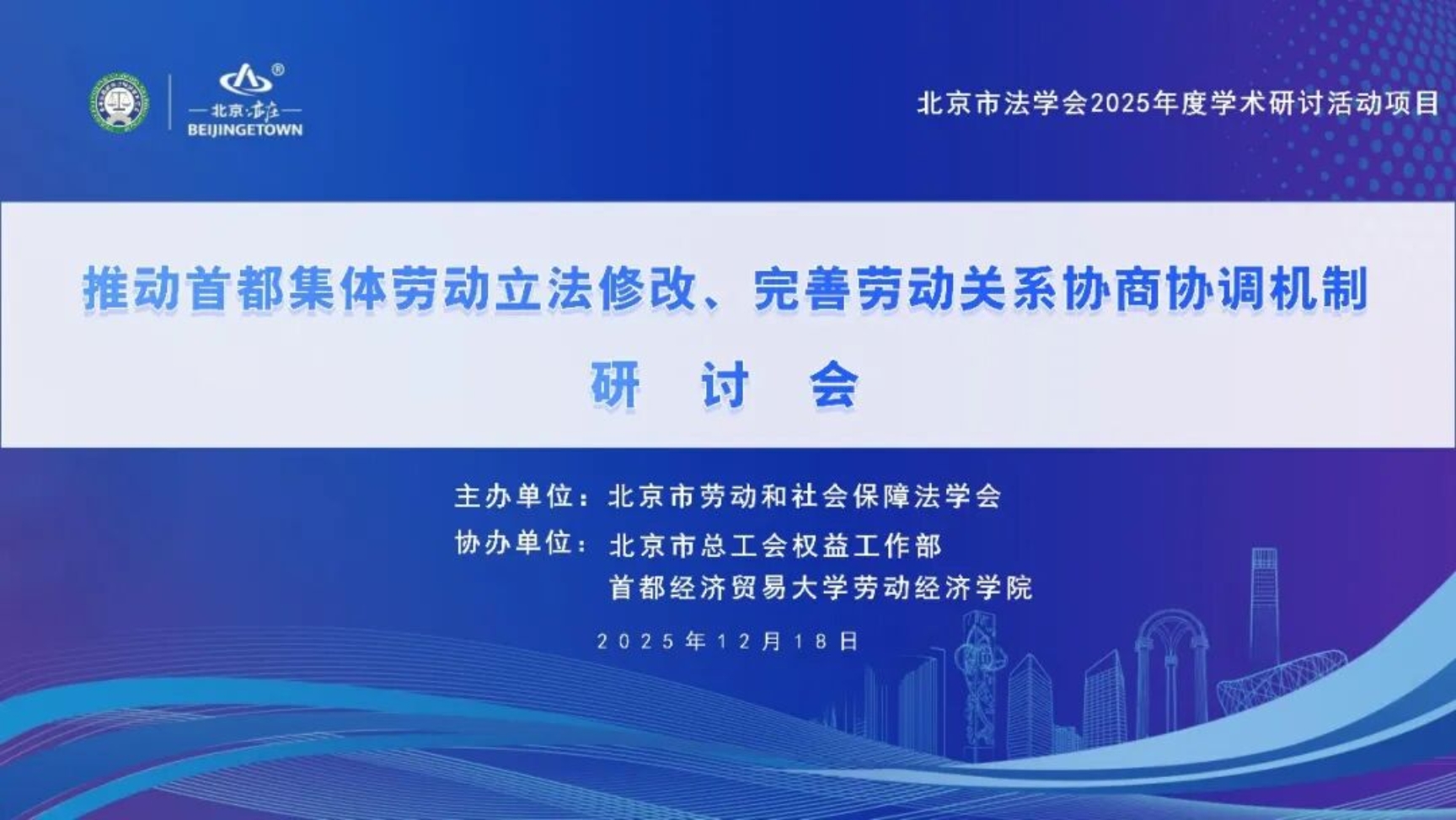 12月18日,由北京市劳动和社会保障法学会主办,北京市总工会权益工作部、乱交 协办的“推动首都集体劳动立法修改、完善劳动关系协商协调机制研讨会”在京召开。本次研讨会系北京市法学会2025年度学术研究活动项目之一,旨在汇聚智力资源,为首都相关地方性法规的修订完善及新业态劳动用工合规治理建言献策。
