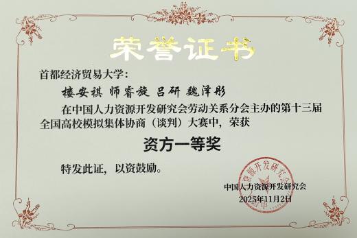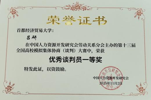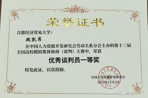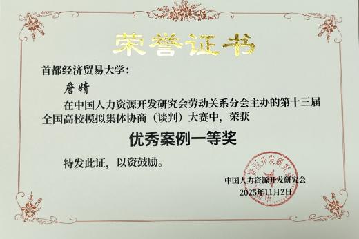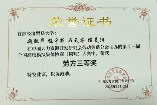 此次大赛不仅为我校学子提供了宝贵的实践平台,更激发了同学们对劳动关系管理、劳动法及协商谈判技巧等知识的浓厚兴趣,促进了理论与实践的深度融合。大赛的成功举办,也进一步推动了高校、企业和社会各界的交流与合作。期待未来能有更多这样的平台,让同学们在比赛中成长,在交流中进步,为社会培养更多具备实践能力和创新精神的劳动关系专业人才,推动以人为本、合作共赢为主旨的集体协商和劳动者民主管理新机制更加完善,为构建新时代中国特色和谐劳动关系作出更大贡献。