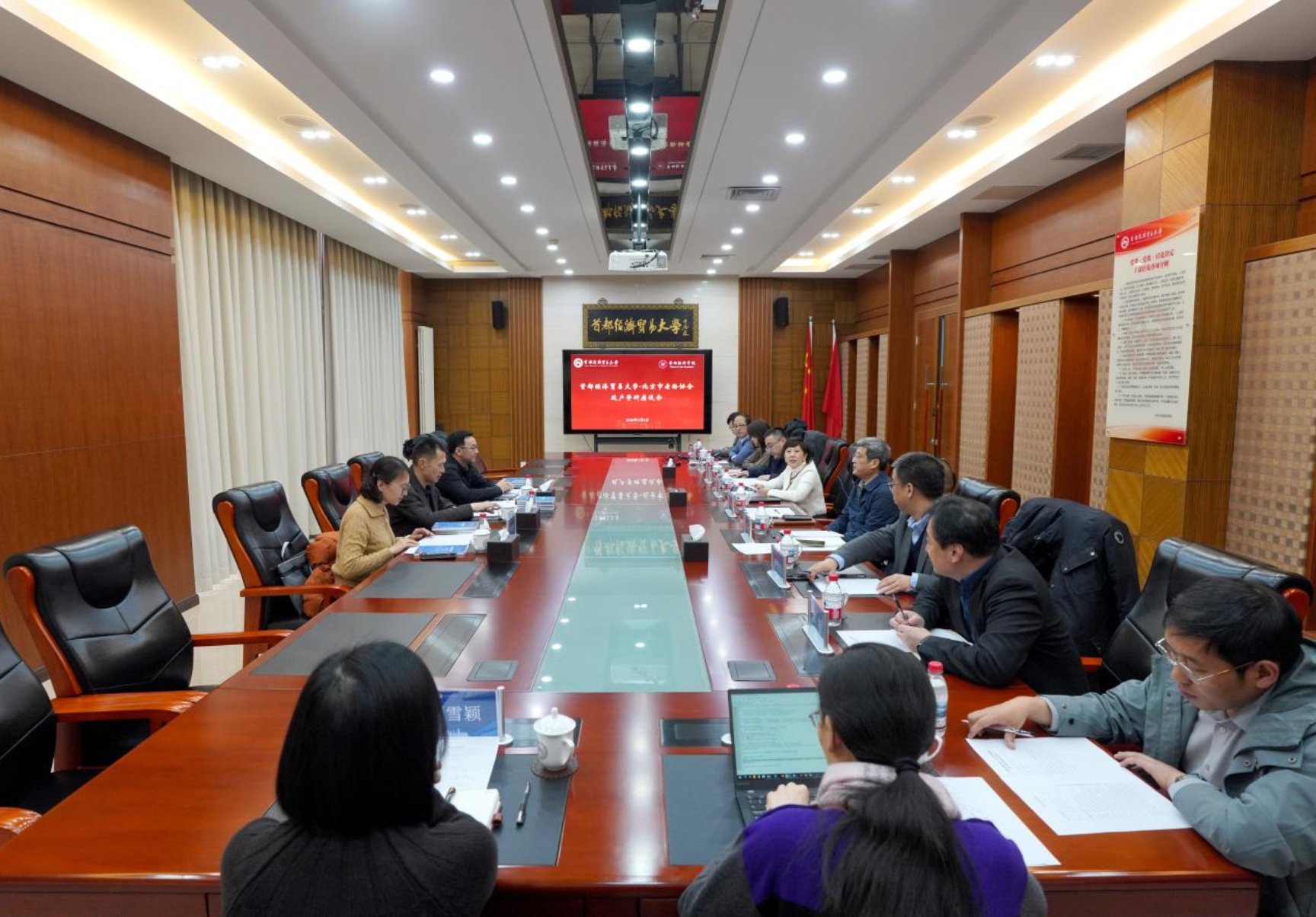 此外,双方就下一步如何推进深度合作召开座谈会。姚林修代表学校系统介绍了我校学科优势和服务新时代首都发展的实践成果。他表示,学校将充分发挥优势学科的辐射带动作用,进一步整合老龄研究力量,为首都老龄事业发展提供更有力的支撑。双方围绕首都老龄事业发展的前沿议题、科研合作及智库建设等内容进行了深入交流和研讨。