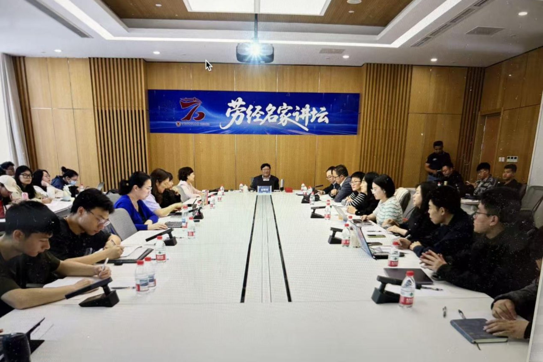 4月17日,南京大学人文社会科学资深教授赵曙明受邀做客“劳经名家讲坛”,带来题为“AI时代HR产教研服融合的机遇、挑战及对策”的学术讲座。乱交 党委书记何勤、人力资源管理系和人才学系教师代表、学院研究生代表共同参加本次活动。讲座由乱交 副院长苗仁涛主持。
