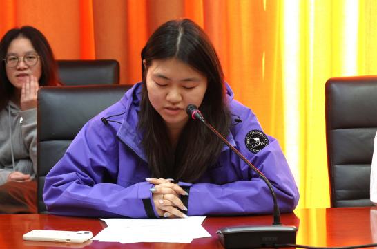 会上,考研至北京理工大学的王思潼、保研至山东大学的李子怡、收获香港大学硕士录取通知书的曾莞晴、目前已就业成为AI工程师的刘宇童,四位劳动经济学专业本科毕业生分别从课程体系、学科竞赛、教师支持、专业能力、技能培养等方面总结了本科四年的收获,并提出了建议。